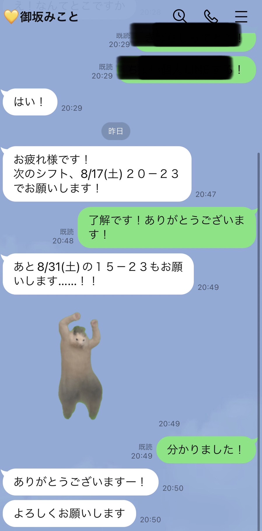 次の出勤は、直近が8/17㈯の20:00~23:00